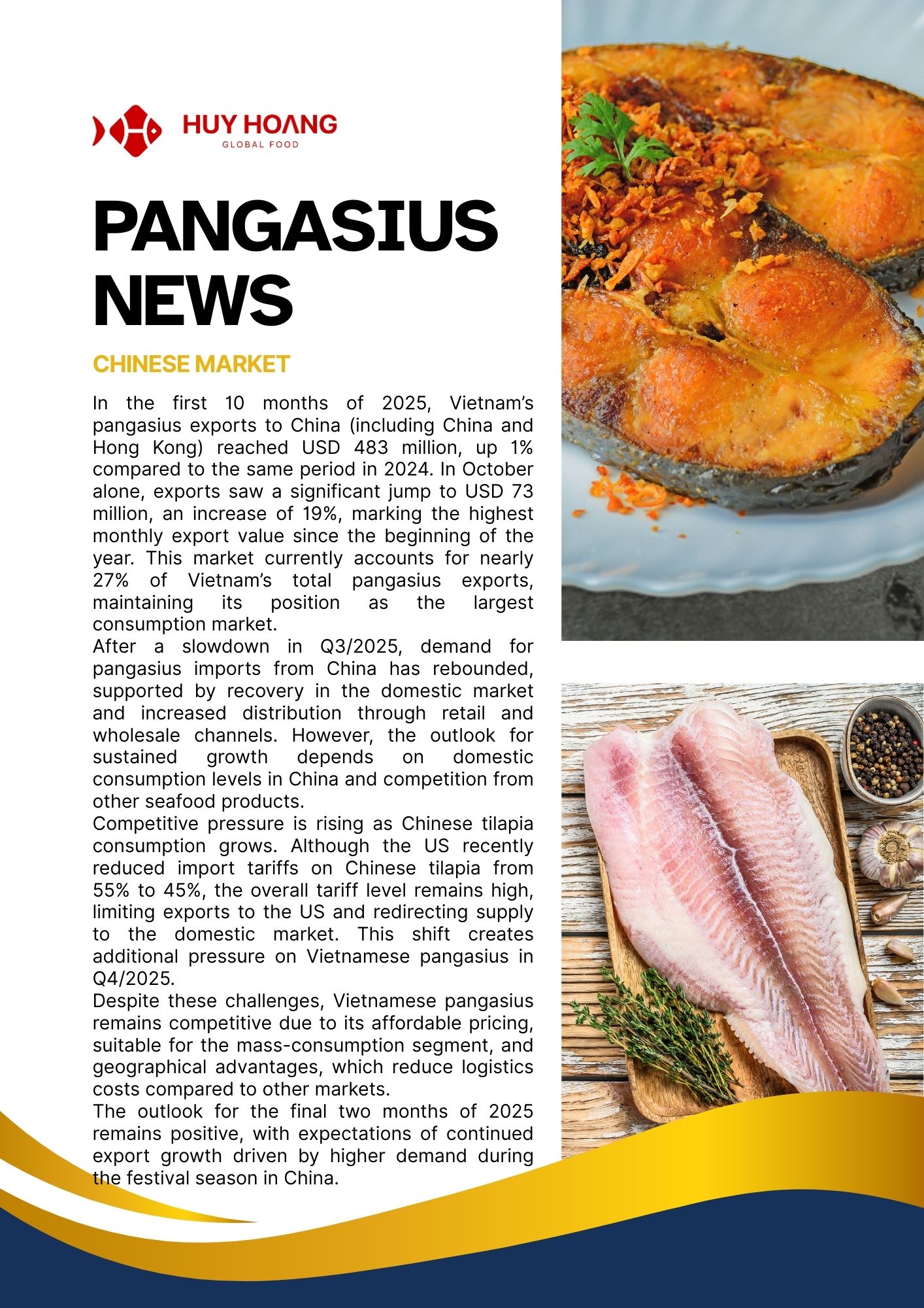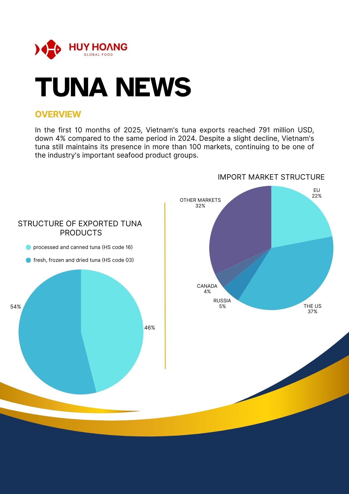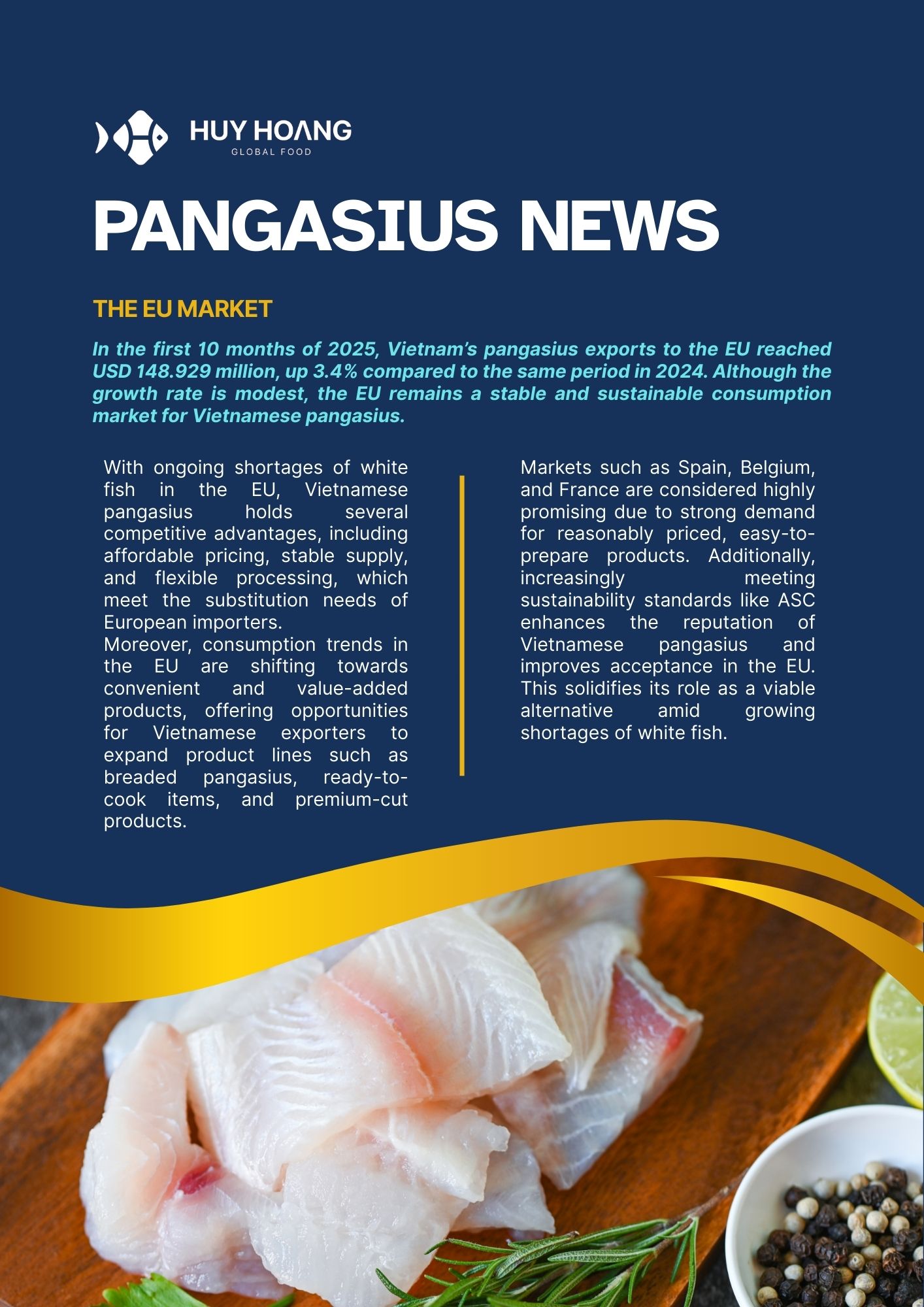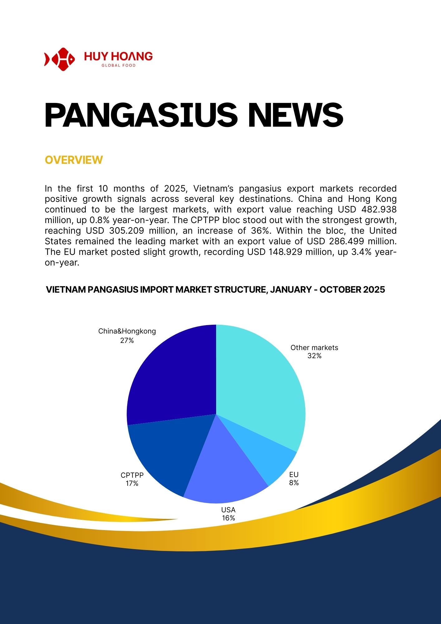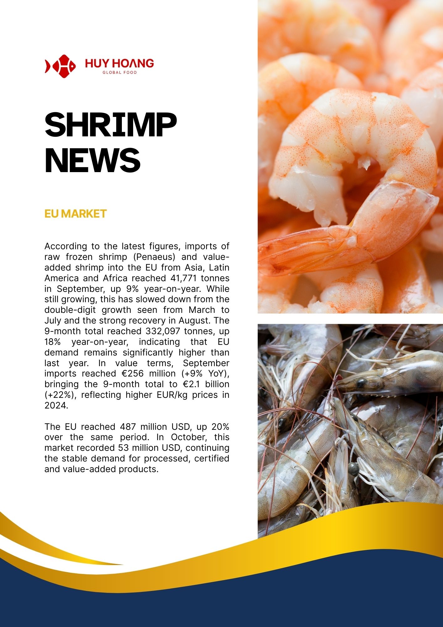 In the first 10 months of 2025, Vietnam’s seafood sector continued its upward trend across key product groups. Pangasius exports reached USD 1.8 billion, with strong growth in China–Hong Kong, CPTPP, and the EU, while high-quality fry programs in An Giang support long-term raw material stability. Shrimp exports hit USD 3.9 billion (+22%), marking the highest monthly performance in October, driven by strong demand from China, CPTPP, the U.S., and the EU despite supply risks from flood losses in Phu Yen. Tuna exports reached USD 791 million, slightly lower than last year, but markets such as the UAE and EU continued to expand. Surimi exports surged 24% thanks to strong demand in Korea, Thailand, China, and the EU, reinforcing Vietnam’s rising position in the global market.