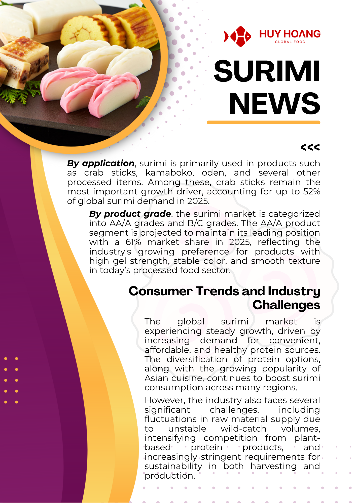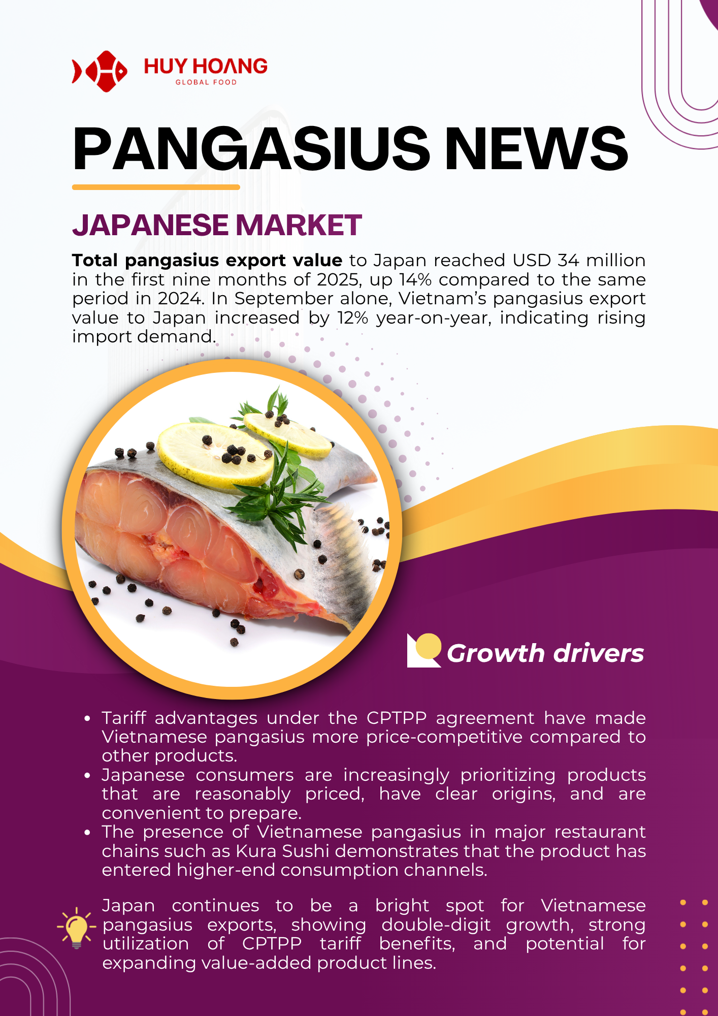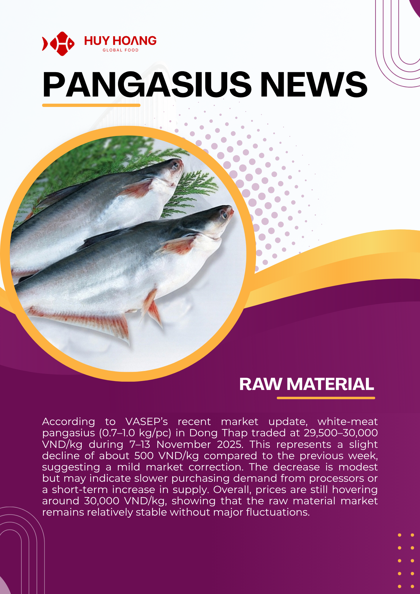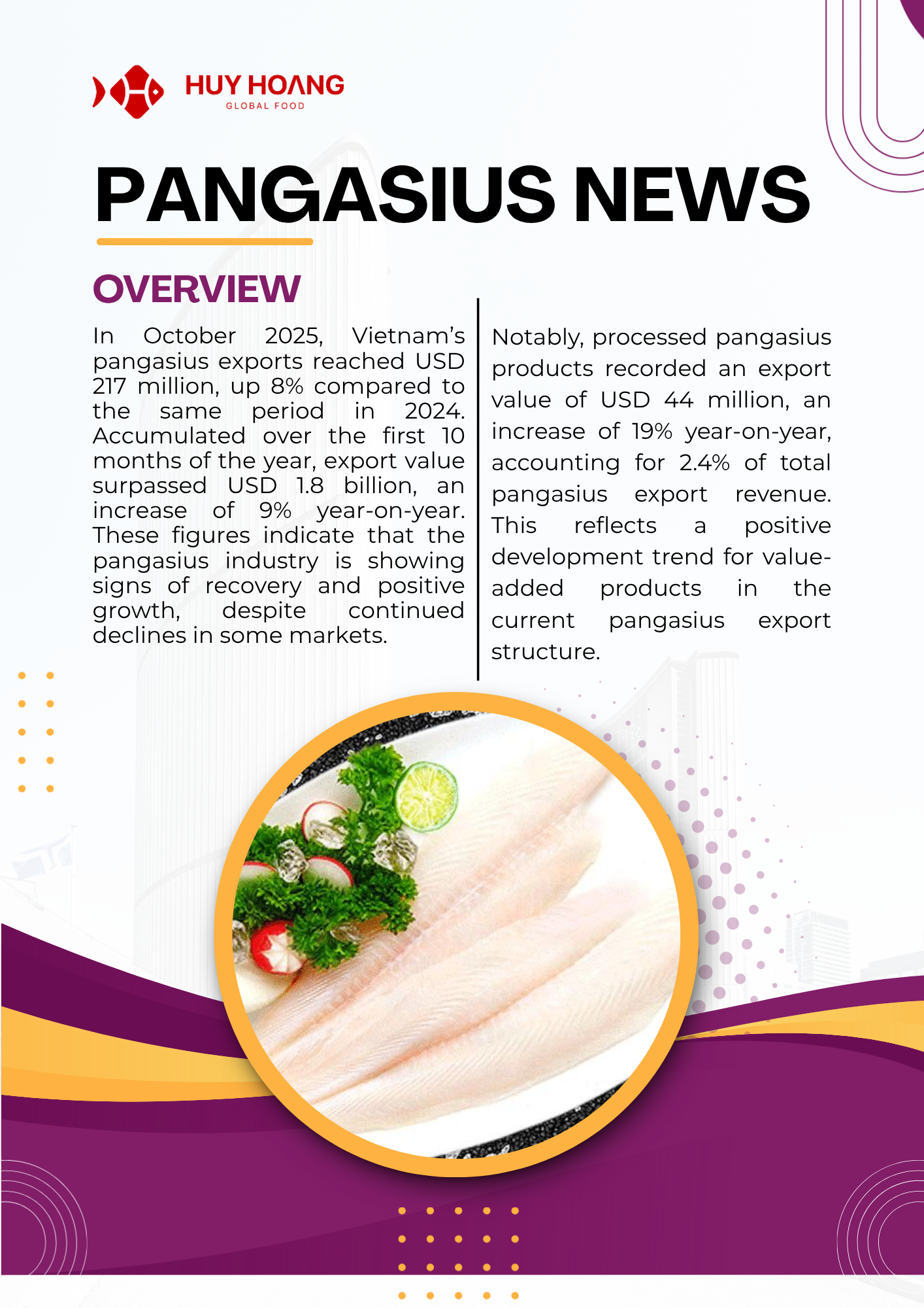In November 2025, Vietnam’s seafood sector showed steady momentum as pangasius exports reached USD 1.8 billion (+9%) in the first 10 months, supported by strong growth in Japan, China–Hong Kong, and CPTPP markets. Shrimp maintained stable raw material prices amid tightening supply of large sizes, while competition in China intensified as Ecuador and India expanded low-priced offerings. The tuna sector saw mixed performance, with solid gains in the EU, CPTPP and Egypt despite declines in Israel and the U.S. Meanwhile, the global surimi market continued its upward trajectory, driven by demand for convenient, affordable protein and high-grade value-added products, though sustainability and raw material fluctuations remain challenges.